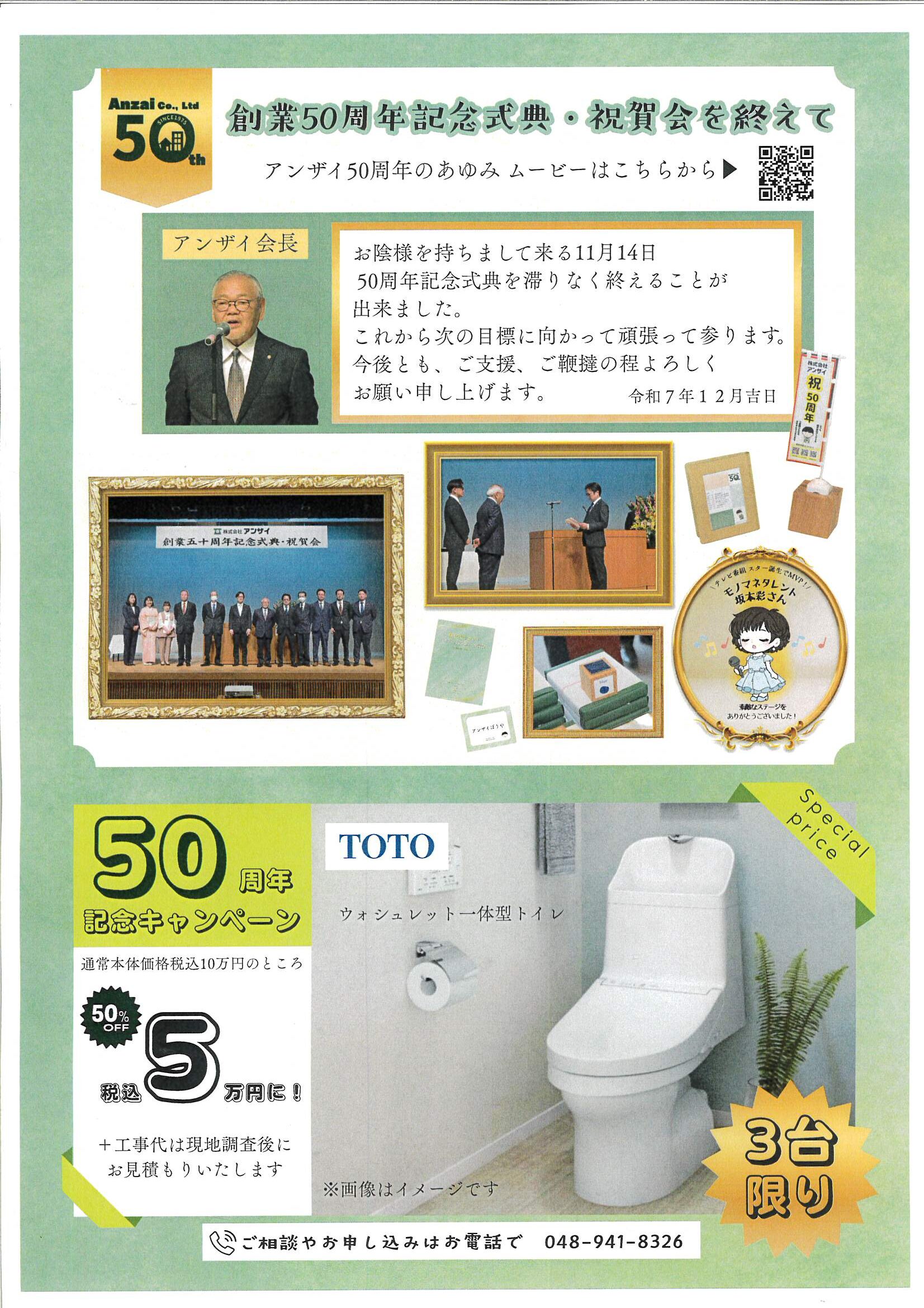 裏面は、アンザイ創業50周年記念式典の模様の一部と、50周年記念キャンペーンをご紹介。